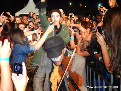 vocalista Fernando Anitelli por duas vezes desceu no meio do povo, a última na